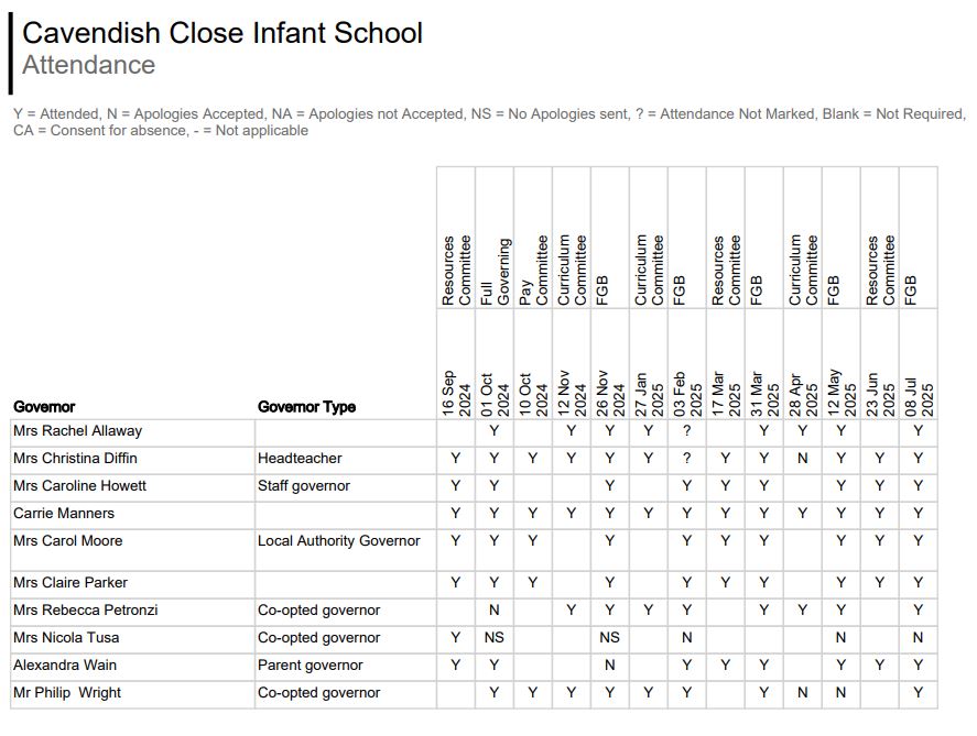 Attendance Record at governing body and committee meetings for the last academic year: