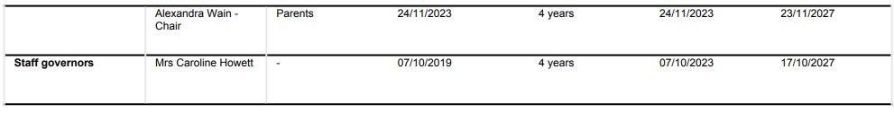 Mrs Moore(Chair for Autumn term), Mr Wright (Vice-Chair), Mrs Oswald, Mrs Howett